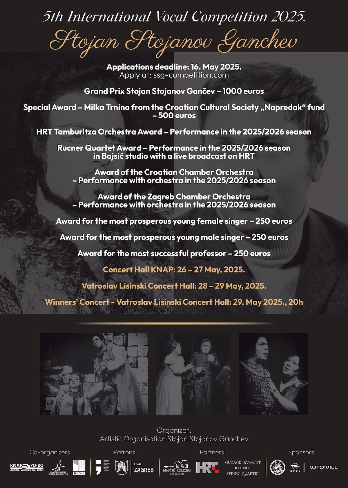 Peto međunarodno natjecanje solo pjevača za mlađe kategorije, Stojan Stojanov Gančev, i ove će se godine održati u koncertnoj dvorani Centra Knap. Program prvog dijela natjecanja na rasporedu je 26. i 27. svibnja, započinje u 10 sati i otvoren je za publiku.