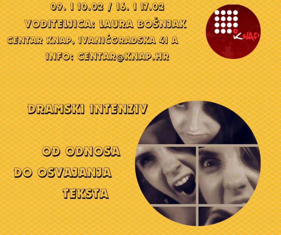 Pozivamo vas na “Dramski intenziv: Od odnosa do osvajanja teksta” – početak putovanja u dubine i zanimljivosti kazališne umjetnosti! Ovaj intenzivni program osmišljen je kako bi pružio polaznicima jedinstvenu priliku za istraživanje i proširenje vlastitih granica unutar dramskog svijeta. Kroz dinamičnu kombinaciju teorije i praktičnih vježbi, sudionici će imati priliku produbiti svoje razumijevanje dramskih elemenata i poboljšati svoje izvođačke vještine.