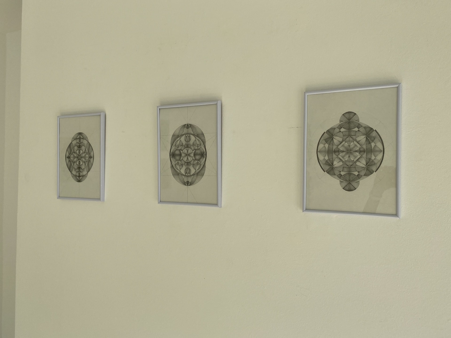 Nakon dosljednog i specifičnog bavljenja knjigom i tekstom, ovim ciklusom Irena Frantal otvara novo polje komunikacije, novi način promišljanja, uvodi nove, tek uvjetno rečeno teme i otvara se novom načinu izraza. Suptilnost, minucioznost i određeni autentični senzibilitet ostaje prepoznatljiv, no umjetnica se sada odmiče od teksta, od jezika, od značenjskog i radu prilazi na posve drugačiji način, gradi ga i razgrađuje slušajući unutarnji ritam i gradeći nove strukture. Dok je u dosadašnjim radovima do izražaja dolazio specifičan senzibilitet, okrenutost tekstu i knjizi kao formama prenošenja i pohrane značenja, novim radovima umjetnica ulazi u istraživanje predjezičnog, apstraktnog, energetskog. Nastali za vrijeme covid krize, lock-downa, potresa, u vrijeme kada intenzivnost vanjskog svijeta potiče unutarnji na prestrukturiranje, umjetnica počinje ciklus nazvan Cymaticon satima i danima gradeći svojevrsne mape vibracija vlastitih emocija i stanja koji, prema riječima autorice, asociraju na magijsko, spiritualno, ritualno i simboličko. Simetrični crteži nastali različitim olovkama, gušćim, tamnijim, rjeđim ili svjetlijim raspoređuju se u poljima čija je simetrija ponekad oko okomite osi ili istovremeno vertikalna i horizontalna. Na izduženim, okomito postvaljenim papirima djeluju poput obrednih zastavica, ili još točnije, totema.