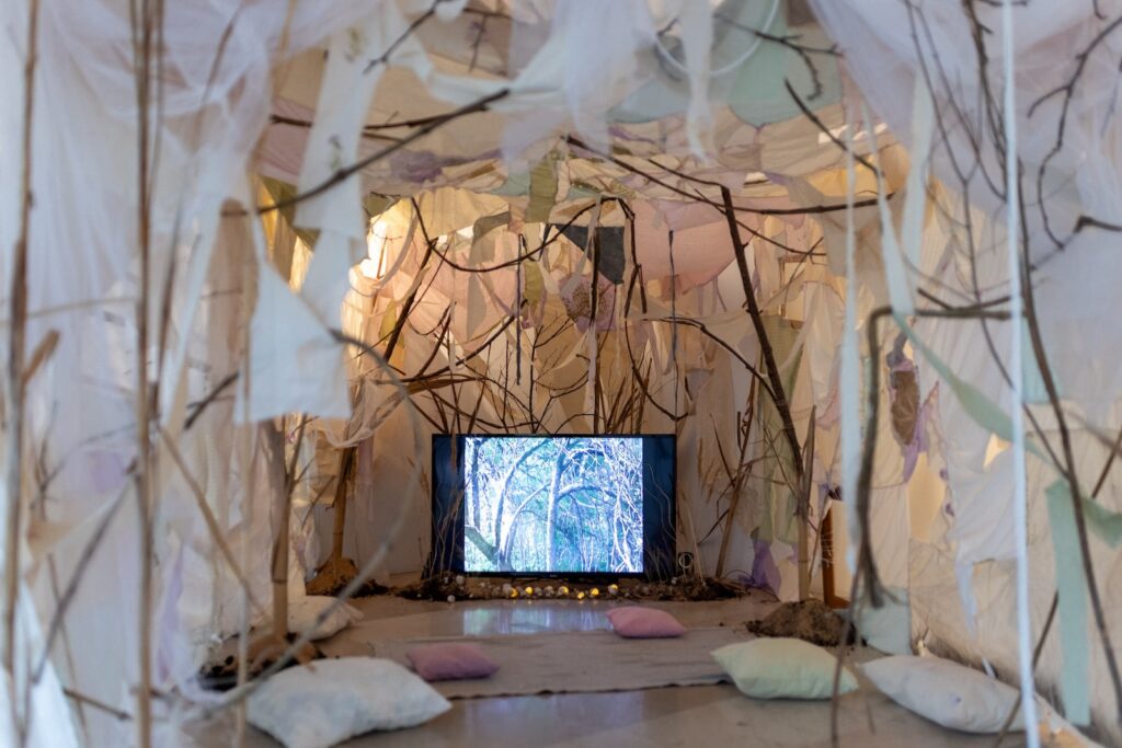 U Galeriji Događanja Stećuk postavlja šator od plahte, Staru hižu, pod kojim nalazimo čitavu zalihu sjećanja – projekciju videa u kojemu umjetnica posjećuje mjesta iz djetinjstva, snimajući ih iz prvog lica, promatrajući travke, dotičući puževe, skidajući latice scvijeća. Video je osoban, taktilan, osjetilan te jasno uprizoruje potragu za djetinjstvom, arheologiju sjećanja.