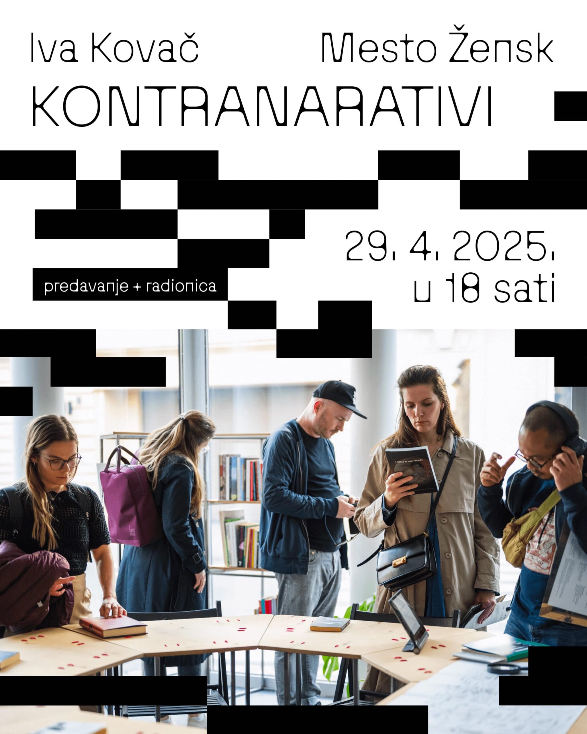 Pozivamo vas na prvu iz serije predavanja i radionica pod nazivom Kontranarativi. Kroz ovaj program, Iva Kovač, programska direktorica organizacije Mesto žensk* (Ljubljana SLO), predstavit će izabrane umjetničke prakse prikazane u programima ove organizacije tijekom zadnjih nekoliko godina. Sudionice i sudionici radionica upoznat će se s umjetničkim radovima koji otvaraju prostor za zapostavljene i marginalizirane ispovijesti.