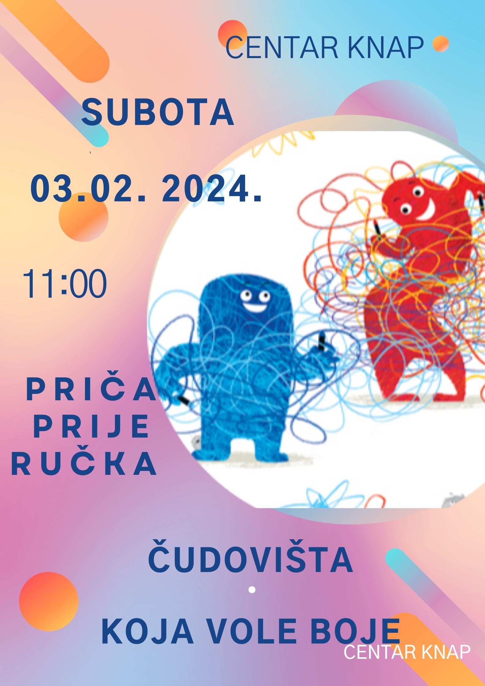 Povedite svoje mališane na ovo kreativno putovanje kroz maštovite priče i umjetničke tehnike. Vidimo se u subotu na nezaboravnom druženju!