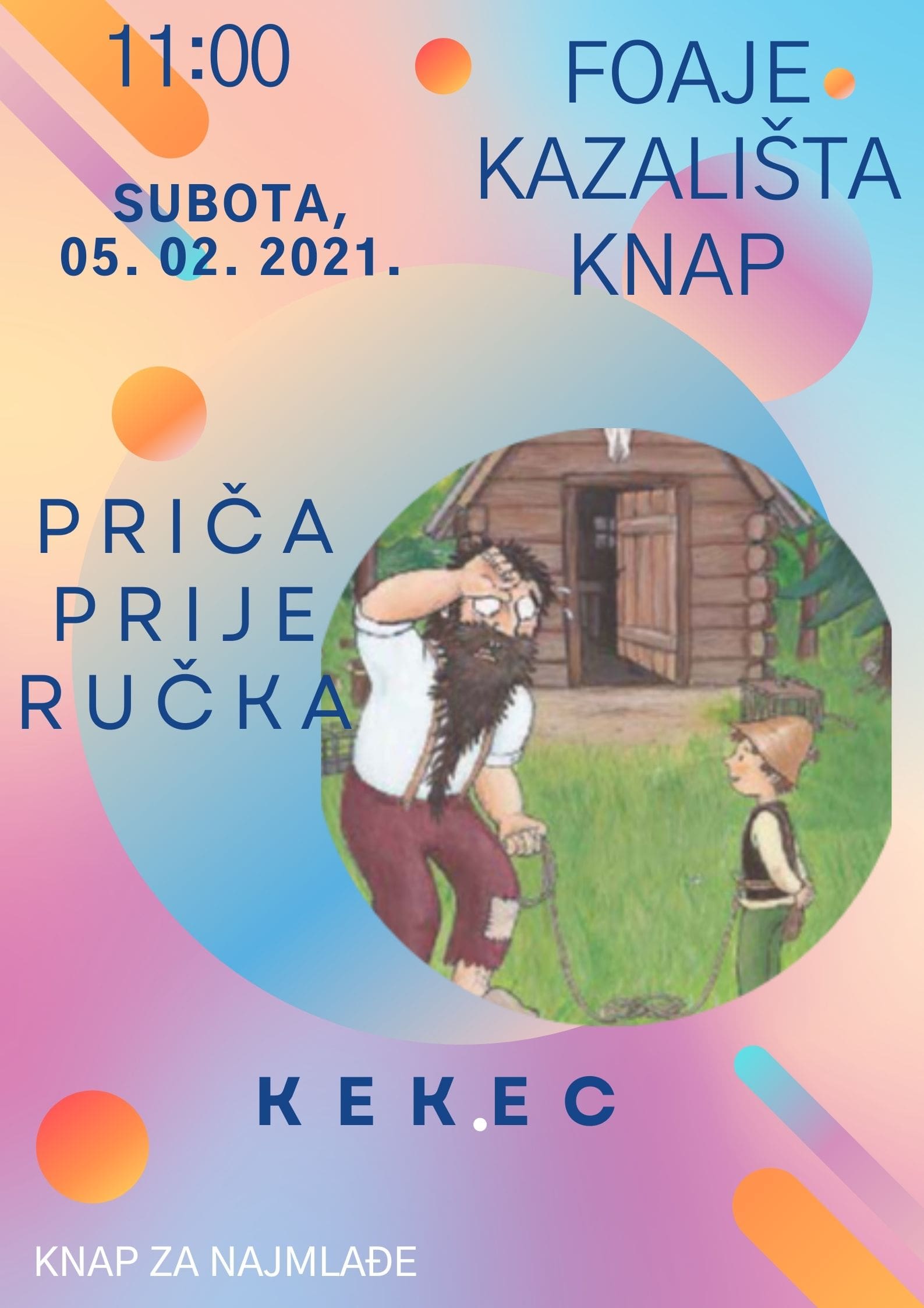 pozivamo vas da nam se u subotu, 05. veljače pridružite na još jednoj zimskoj Priči prije ručka. Kako je zima još uvijek u punom jeku, ove subote ćemo se u mašti preseliti u susjednu nam Sloveniju te ispričati priču o njihovom super heroju dječaku Kekecu. Nakon priče, očekuje nas zaista poseban rad s biljkama i čarobnim napitcima, a nakon toga ćemo pokušati naučiti pjevati Kekecovu pjesmu kako nikada ne bismo zaboravili, zašto je dobra volja najvažnija . Dok mi otkrivamo nove alpske horizonte , naši dragi roditelji mogu uživati u subotnjoj kavi u kafiću Kazališta KNAP. Čekamo vas u našem foajeu točno u 11 sati.