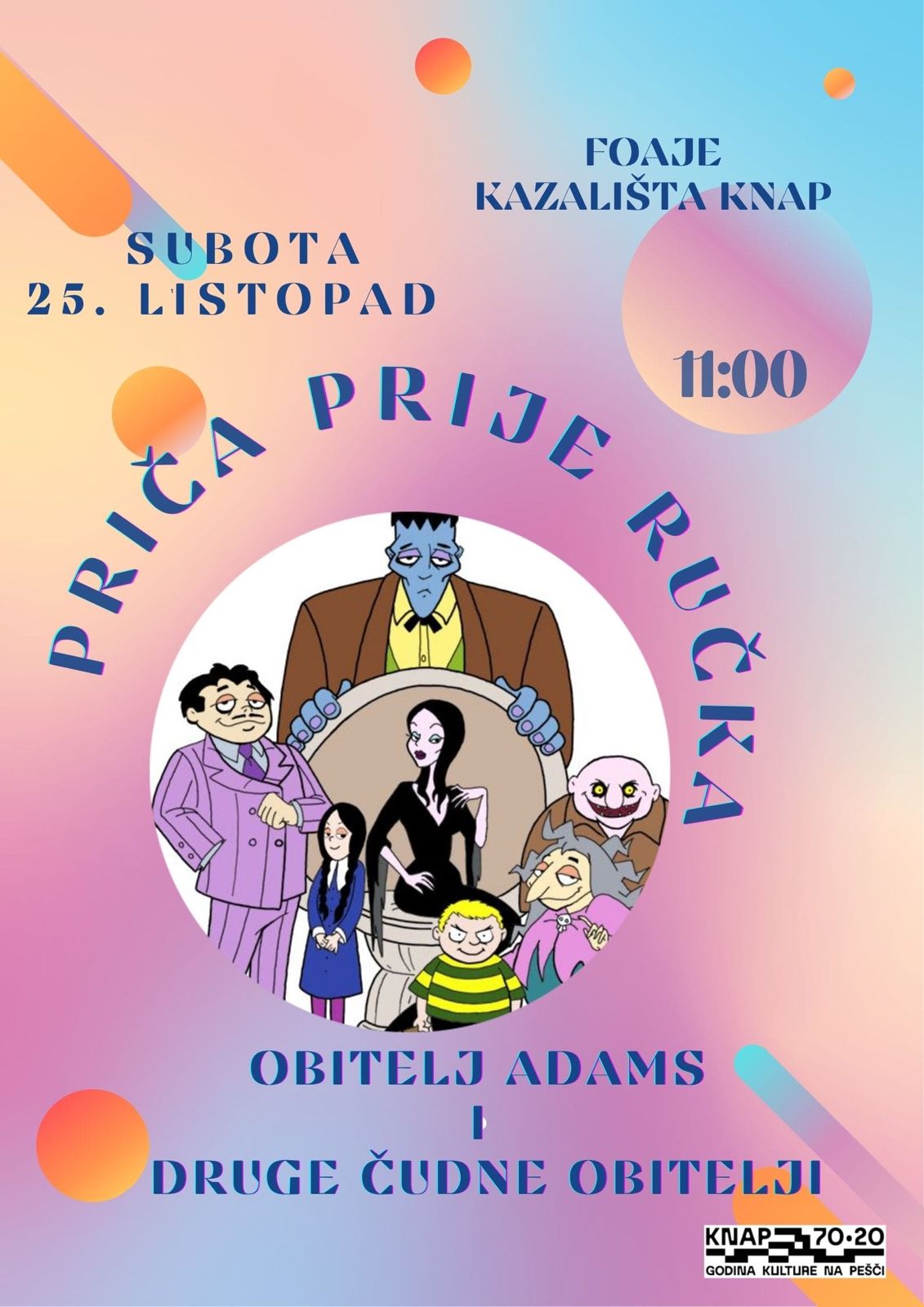 U subotu, 25. studenoga u 11 sati, u Centru KNAP, održat će se zadnja „Priča prije ručka“ u mjesecu listopadu. Ovoga puta ulazimo u svijet čudnih, neobičnih i pomalo mračnih obitelji koje su najprije živjele u stripovima, a zatim oživjele u animiranim verzijama i postale dio nezaboravnih filmskih priča.