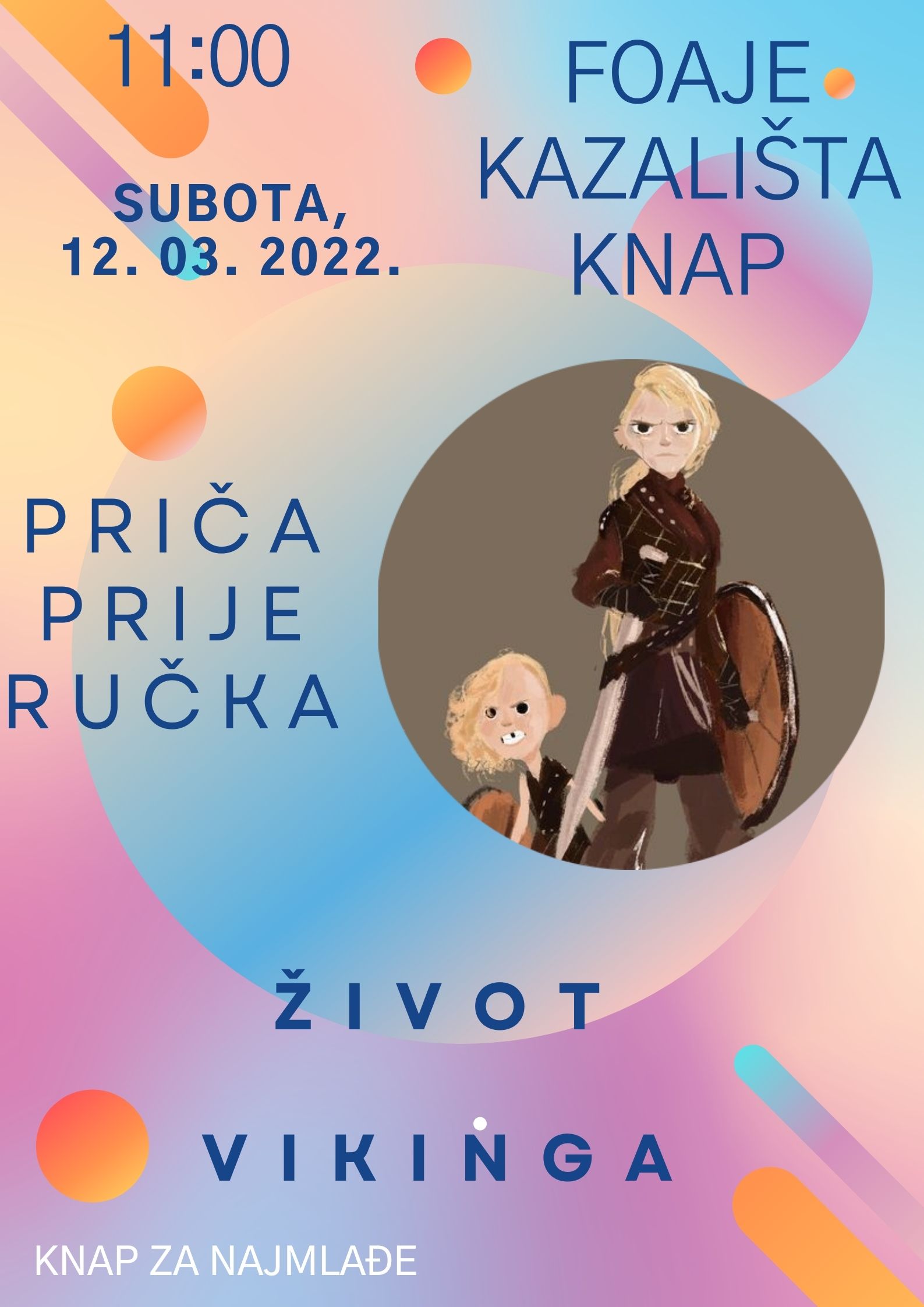 pozivamo vas da nam se u subotu, 12. ožujka pridružite na našoj omiljenoj Priči prije ručka. Kako se u kroz ožujak bavimo mitovima različitih naroda , tako ćemo ove subote odmaštati u skandinavske krajeve kako bismo saznali nešto više o životu i tradiciji te vjerovanjima drevnih Vikinga i Vikingica. Saznat ćemo što su to drevne rune te kakva su im pojedina značenja, a u kreativnom dijelu ćemo izraditi svoje ratničke simbole po uzoru na Vikinge. Dok mi budemo saznavali u što su to vjerovali ovi drevni ratnici, naši roditelji mogu pokrenuti svoje kreativne energije za ostatak subotnjeg popodneva uz kavicu na suncu u našem dvorištu. Čekamo vas u 11 sati u foajeu Kzališta KNAP.