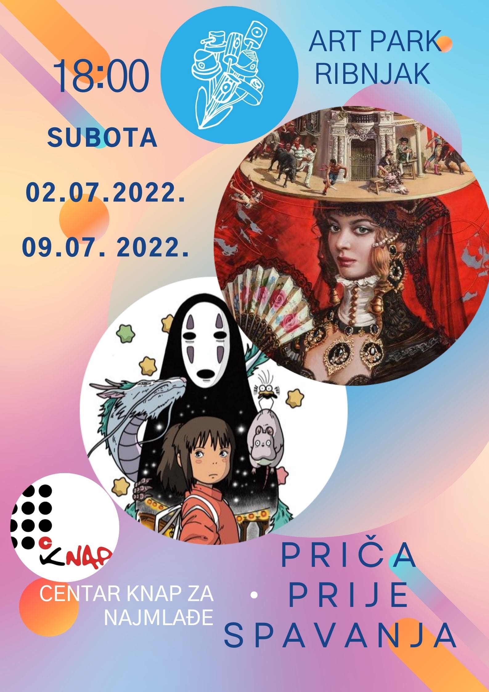 Pozivamo sve klince i njihove roditelje da nam se u subotu, 02. i 09. srpnja u 18 sati pridruže u Art parku na programu Priča prije spavanja. Kako ove godine kroz priče otkrivamo zemlje svijeta, učimo više o njihovim kulturama, ljudima i tradiciji, tako ćemo unutar ova dva termina putovati do dalekog Japana i tople Španjolske. Priče koje ćemo pričati bit će misteriozne i pune iznenađenja, a kada maštu umorimo pričama- zabavit ćemo se radeći čarobni pijesak i kastanjete. U svakom slučaju bit će nam zabavno do te mjere da ćemo teška srca otići na spavanje. Čekamo vas u najugodnijem parku u gradu- Ribnjaku, pod nekom od krošnjica. Vidimo se!