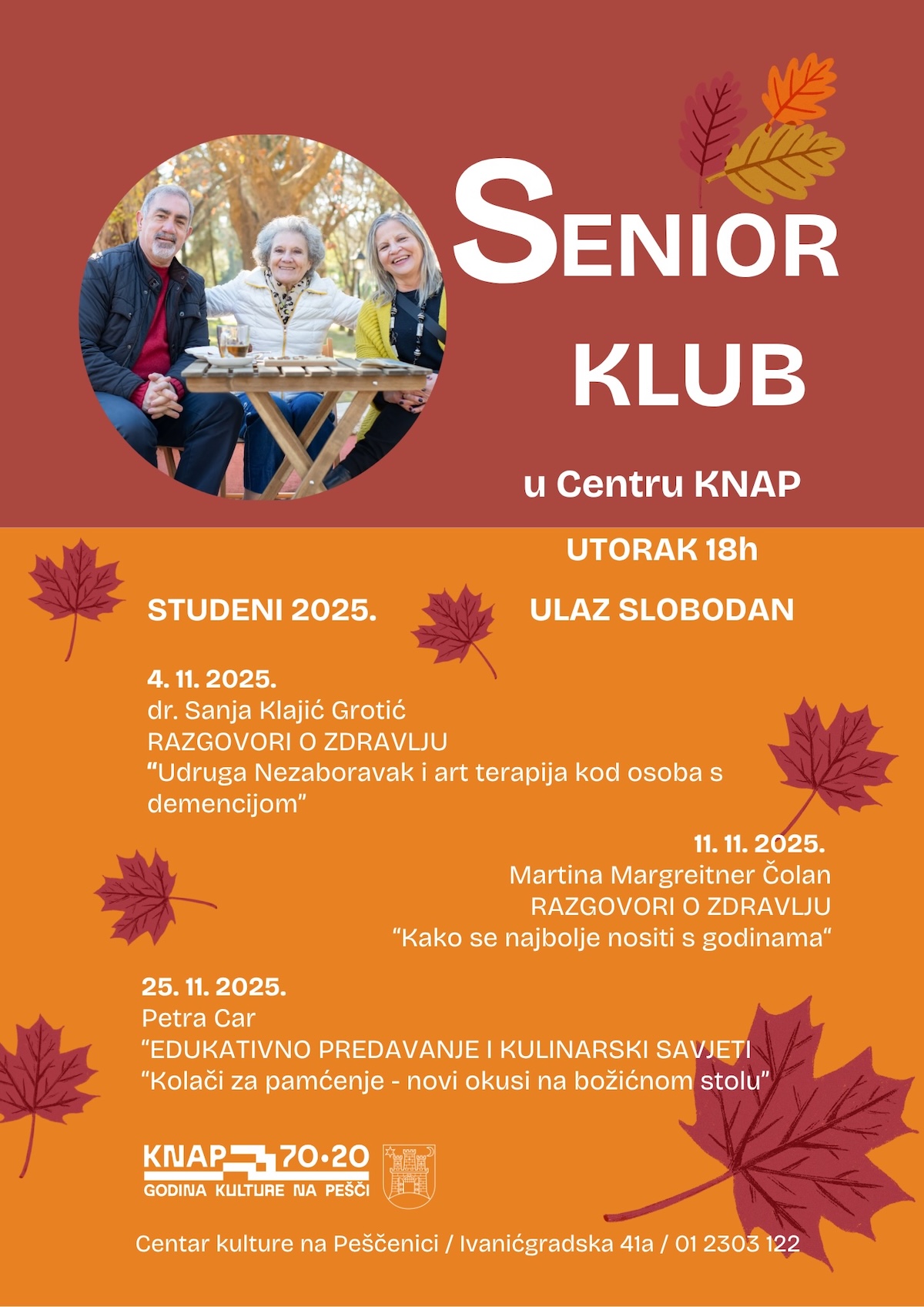 Tijekom studenoga Senior klub donosi poticajna predavanja posvećena zdravlju, kvaliteti života i međusobnoj podršci.