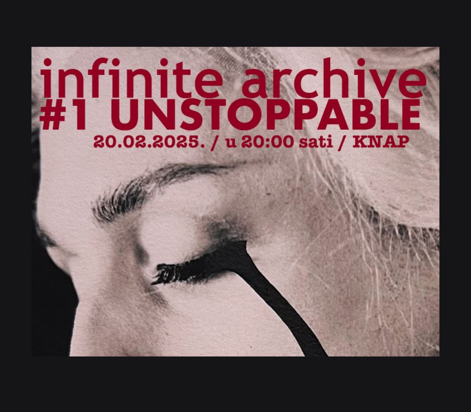 Infinite Archive #1 dokumentarna je predstava i instalacija nastala kao rezultat tromjesečnog istraživačkog procesa u Zagrebu, u suradnji hrvatskih i argentinskih umjetnika. Različitost priča iz života LGTBIQ+ zajednice polazište su projekta. One dodiruju identitete i nezaustavljive prirodne i društvene silnice koje nas oblikuju i određuju.