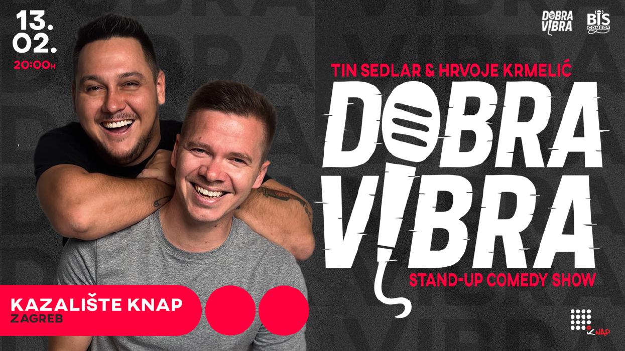 “Dobra vibra” je zamišljena kao stand up večer na kojoj vlada isključivo dobra vibra i energija, nema mjesta negativi i sve ide u smjeru pozitive. Tin i Hrc izvodit će materijal po izboru – od best of materijala, novijeg teksta, potpuno novog teksta i svega onoga što im u tom trenutku padne na pamet.